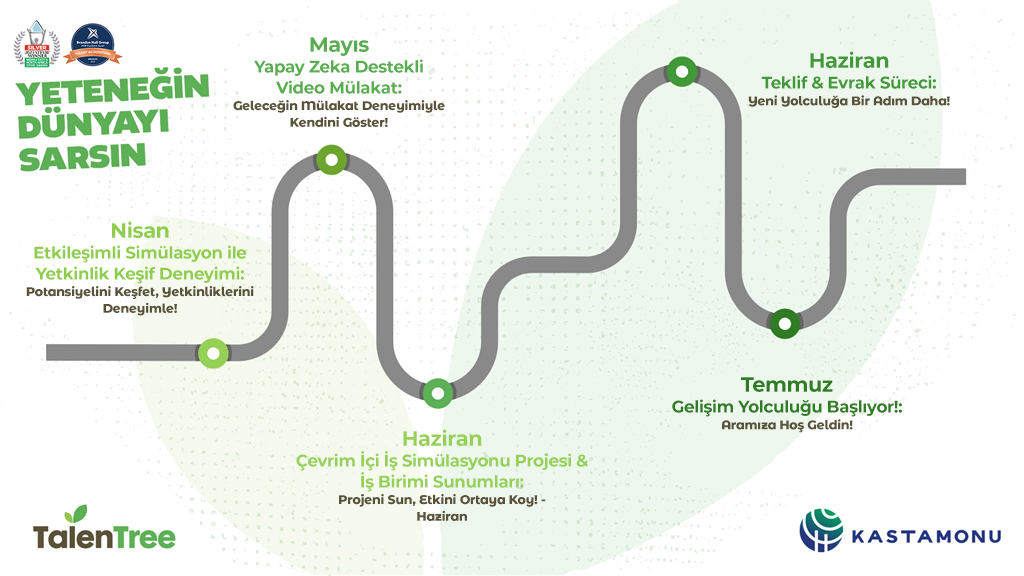 Sen de “Yeteneğim Dünyayı Sarsın!” diyerek Kastamonu Entegre’yi daha yakından tanıyacağın bir yolculuğa çıkmaya hazır mısın? Kastamonu Entegre 2026 TalenTree Gelişim Yolculuğu seni bekliyor!