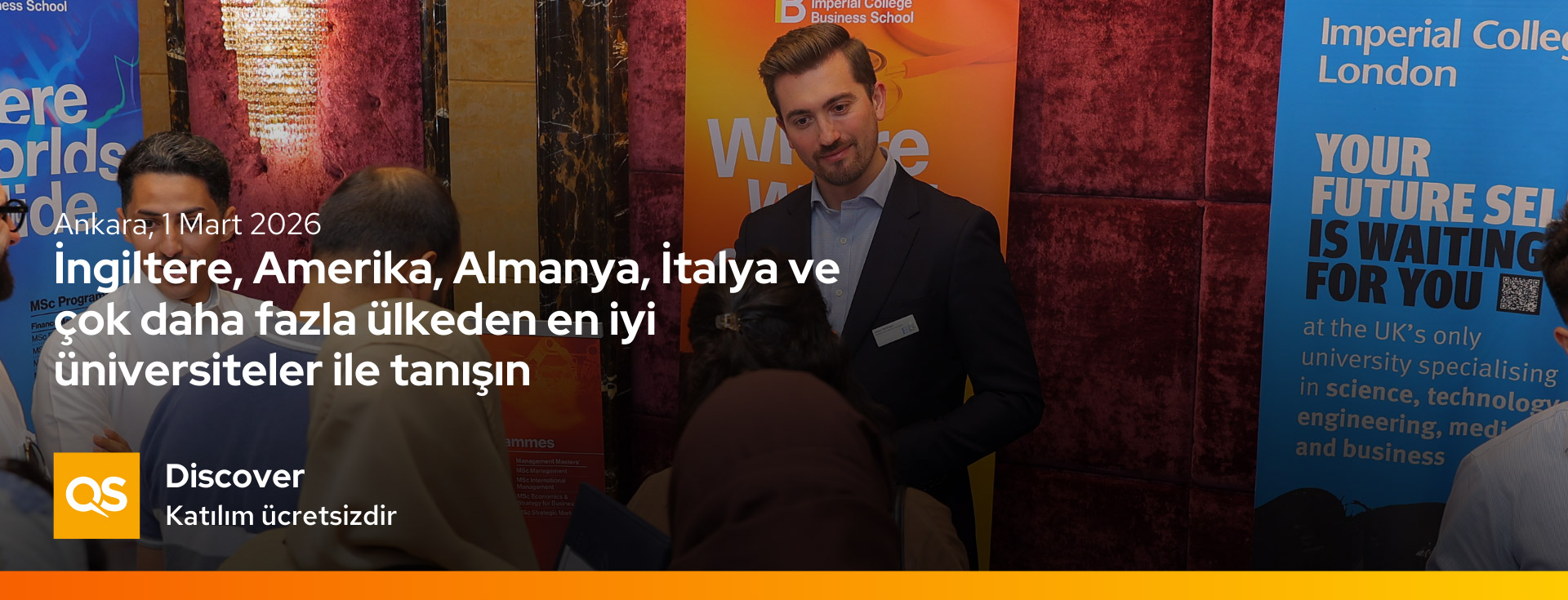 Türkiye’ye özel olarak gerçekleştireceğimiz QS yurtdışı eğitim etkinliğimizi duyarmaktan mutluluk duyarız. Sizleri 1 Mart 2026 tarihinde gerçekleşecek yüksek lisans,doktora ve MBA fuarımıza davet ediyoruz!